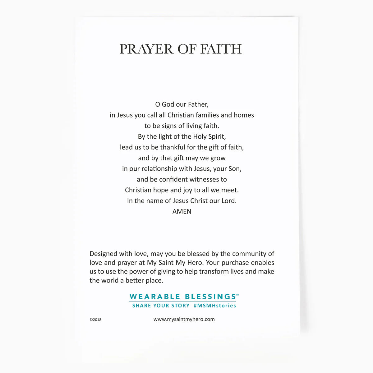 Faith Petite Cross Necklace comes on an inspirational card with a Prayer of Faith