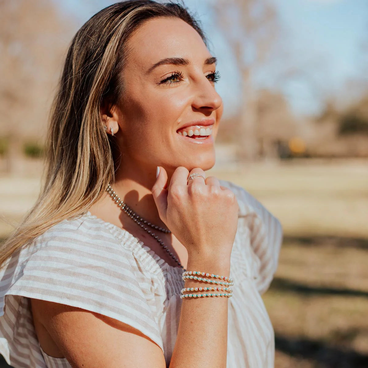 Jesus. Others. You. the true J.O.Y. of Jesus! When we put Jesus first, He promises us joy in Him, peace in His love, and hope of eternal happiness in heaven. As you wear this piece pray, “less of me and more of You”.