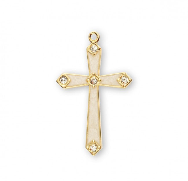 Gold Over Sterling Silver Pearl Enameled Cross with Crystals
