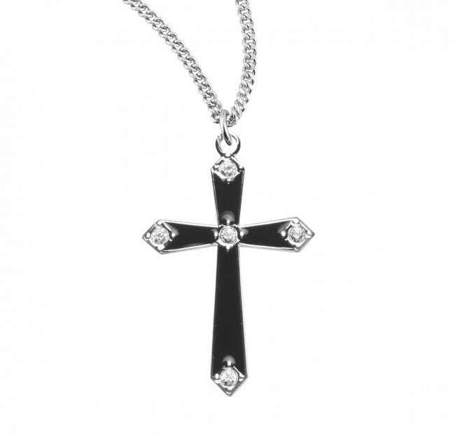 Sterling Silver Black Enameled Cross with Crystals