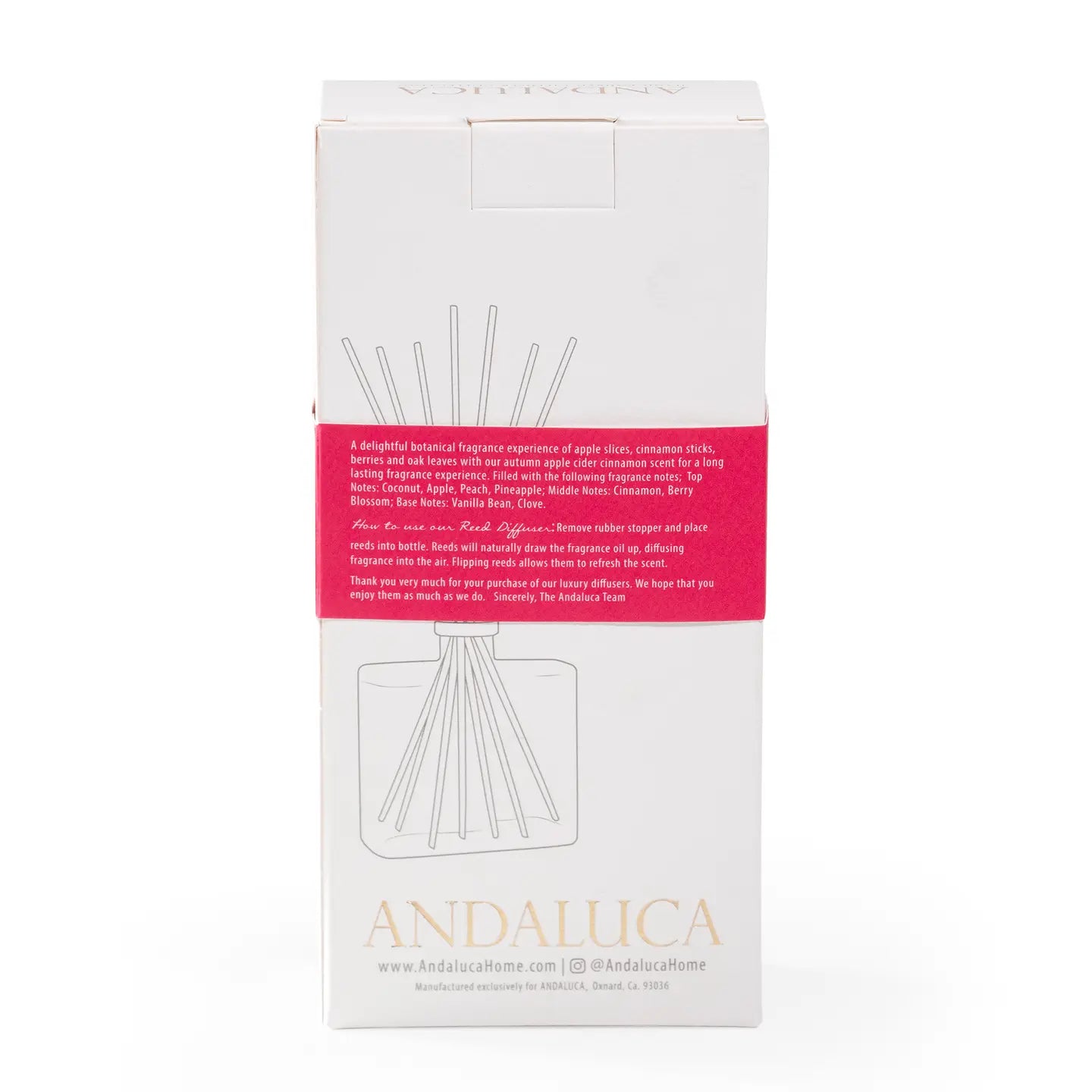 A delightful experience of apple slices, cinnamon sticks and other natural botanicals layered with an apple cider cinnamon fragrance combing to make a wonderfully spiced autumn fragrance. Always hand filled in California. 7.5 fluid ounces. Fragrance notes: Top: coconut, apple, peach, pineapple. Middle: cinnamon, berry blossom. Base: vanilla bean, clove.